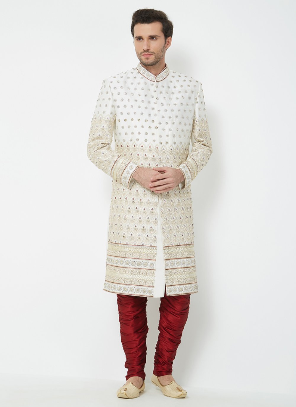 Off White Wedding Sherwani / Mens designer sherwani ultimate look white color angarkha pattern indo western and matching trouser is increasing its charm.