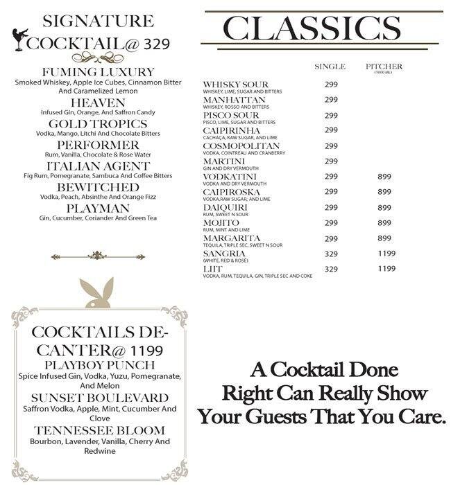 Playboy Club Menu Delhi - Best time to go is near 1:30 and top events on weekend.i love going playboy.